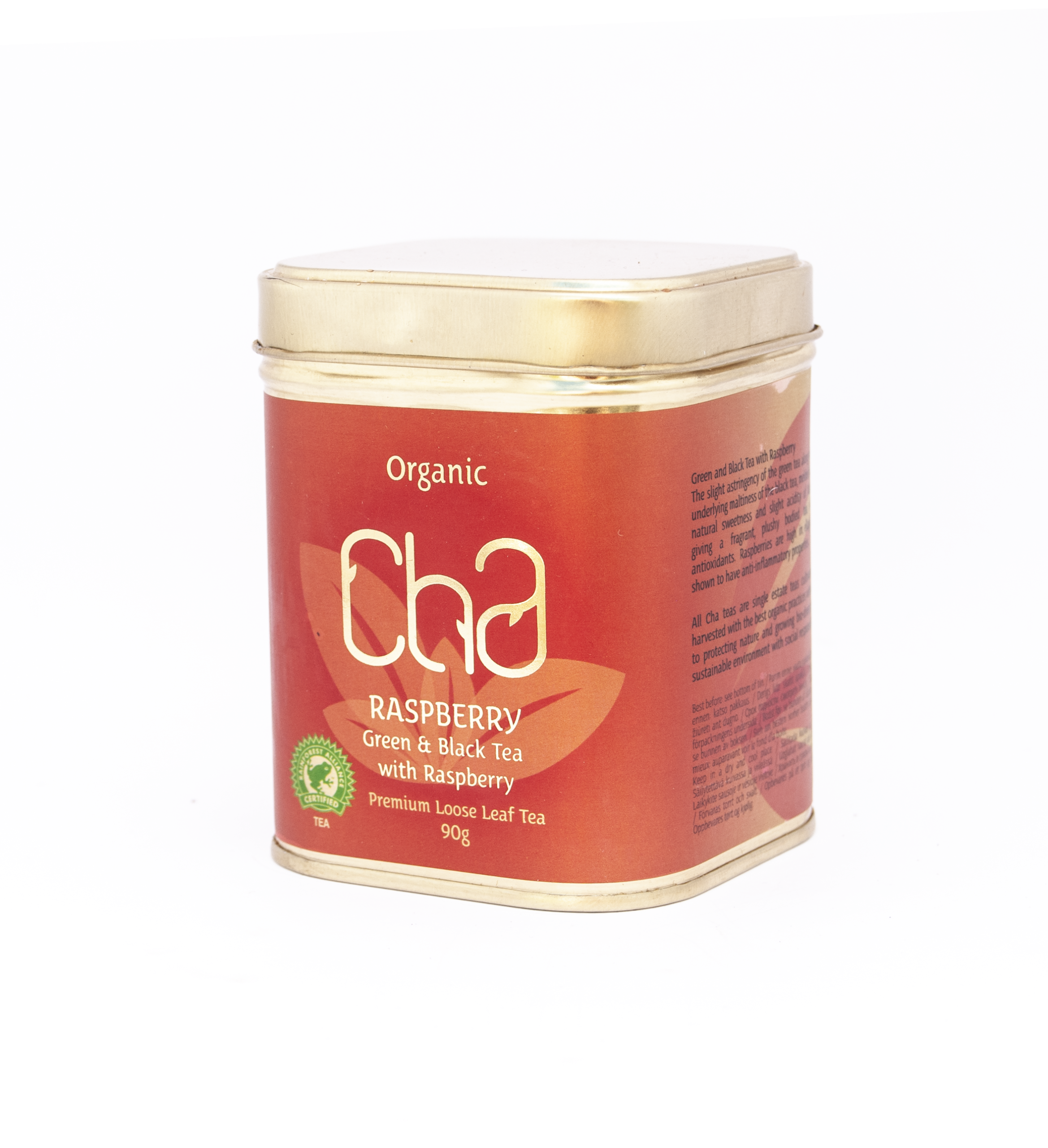 Loose leaf in square tin (90g net) – Premium loose long leaf Green & Black teas with extract of Raspberry